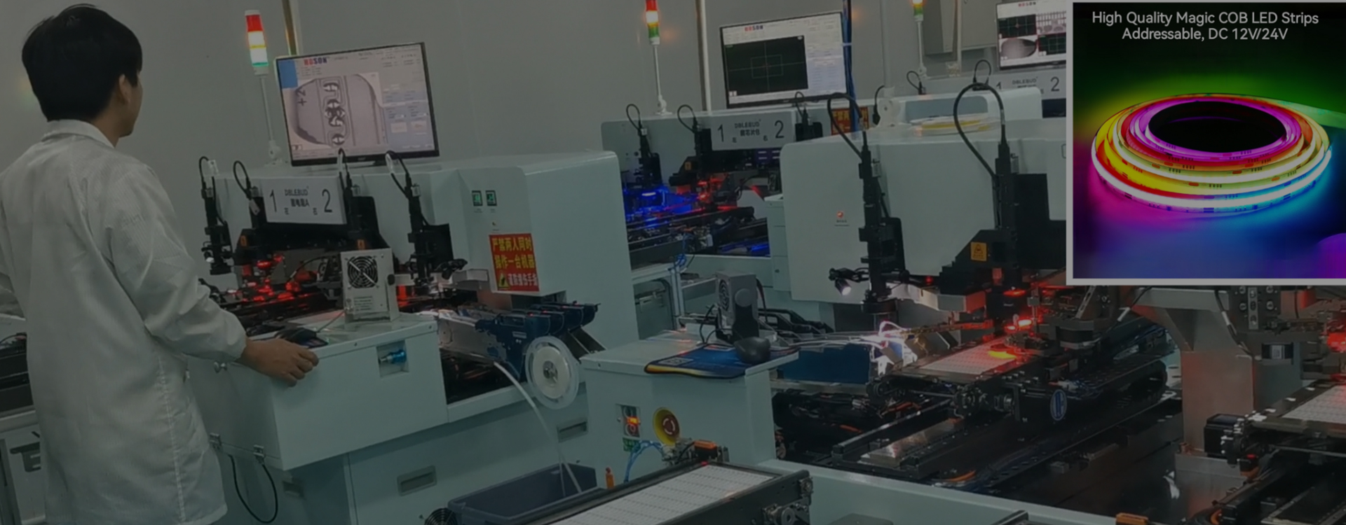 On the sixth floor, there are 8 advanced dust-free workshop for COB lights.