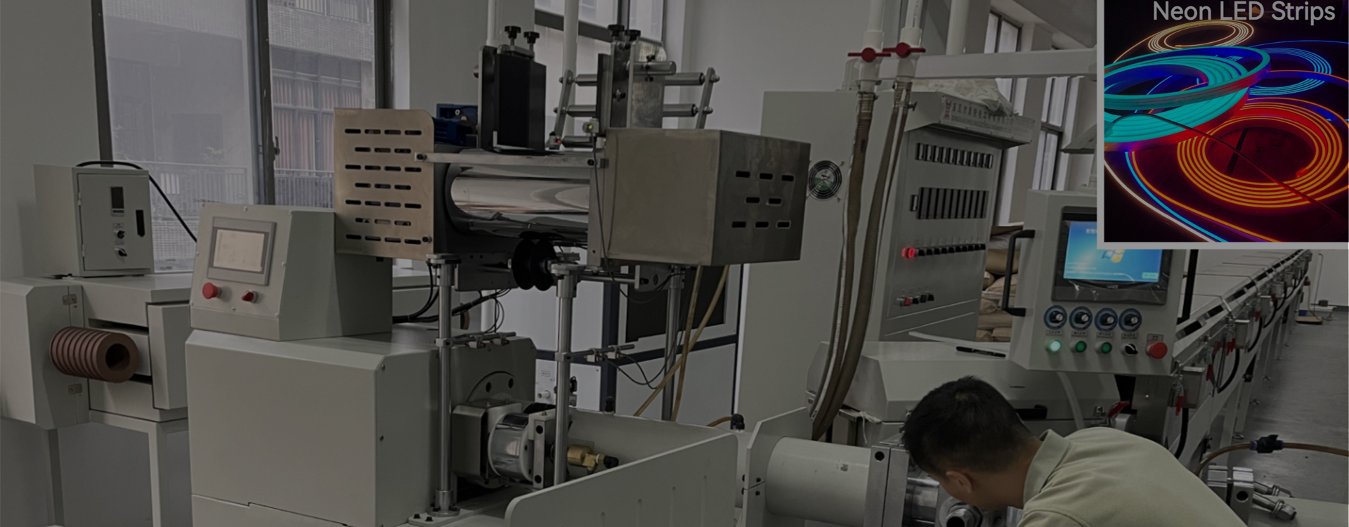 On the ground floor, we have 20+ plastic extrusion lines, mainly producing LED strip cover.